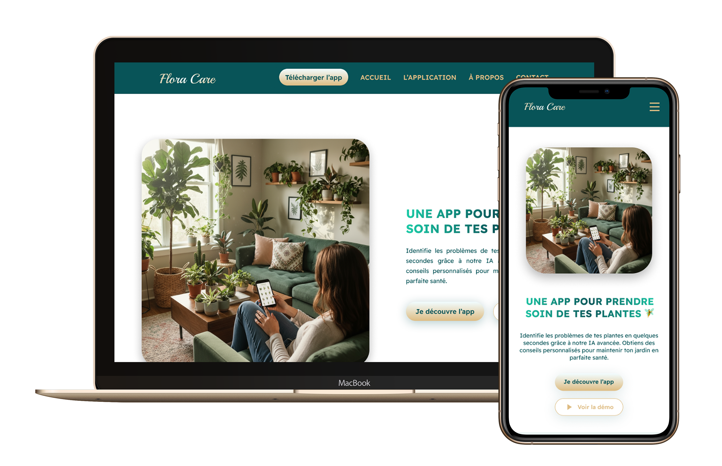 Site web réactif pour l'app mobile Flora Care