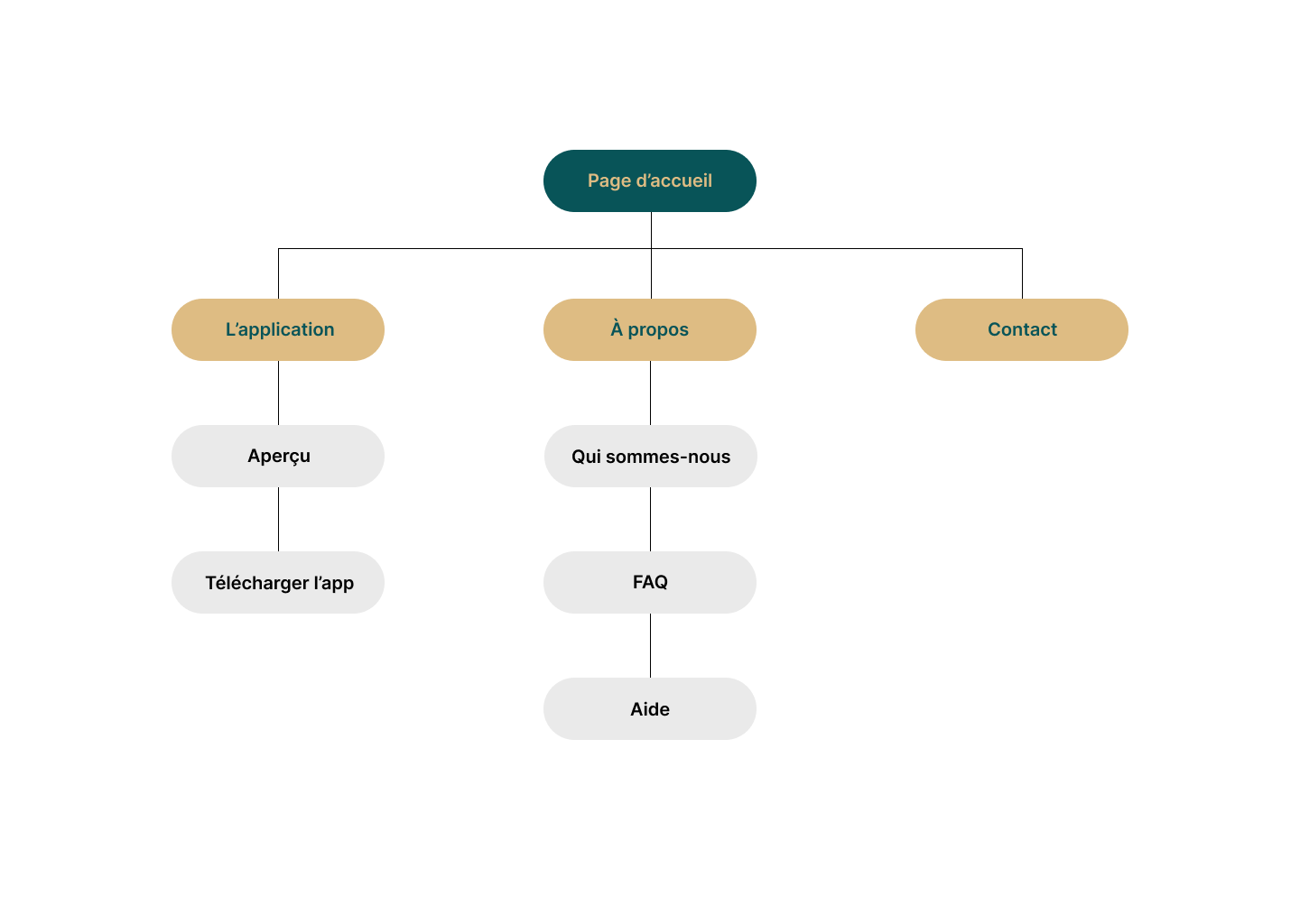 Il s’agit d’un sitemap assez simple pour une navigation claire et directe afin de simplifier les informations.