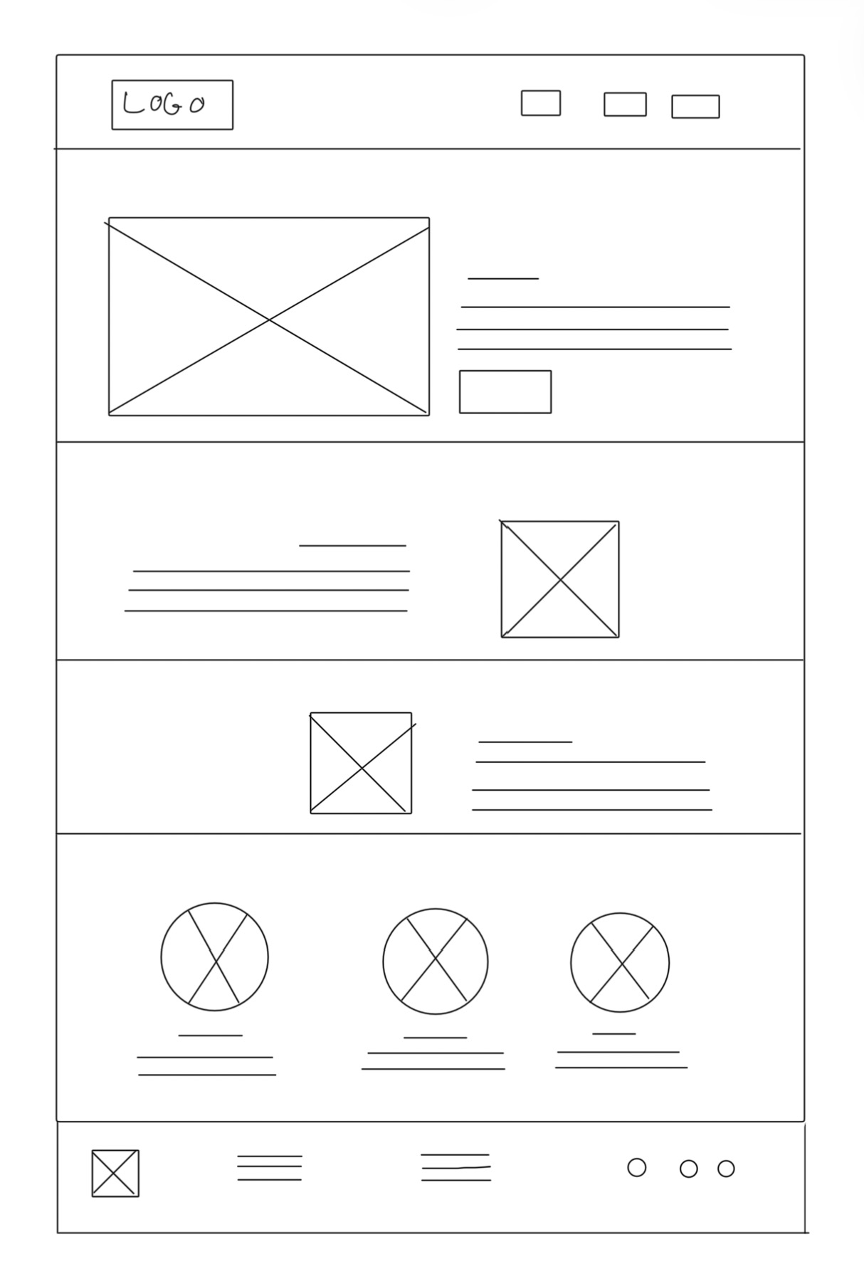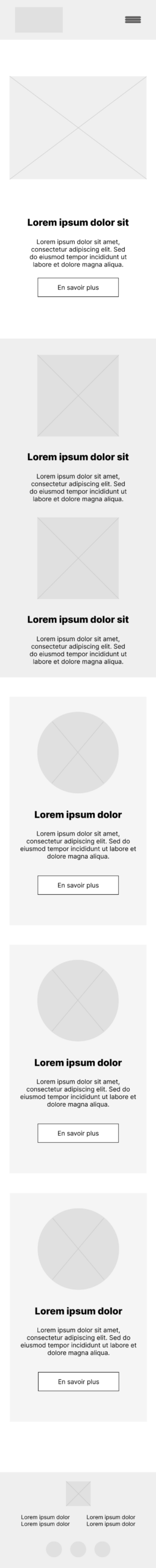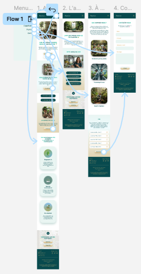 Voici la version finale de chaque page du site avec la sélection des éléments favoris de chacun des wireframes papier dessinés.